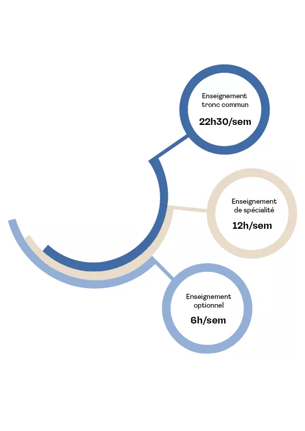 • Ces spécialités totalisent 12h hebdomadaires et permettent de personnaliser le parcours en fonction des projets d’études supérieures.